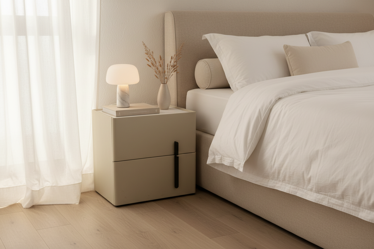 The spacious top surface provides the perfect resting place for your bedside essentials—a soft-glow reading lamp, your favorite book, a glass of water, or your phone. The generous drawer offers discreet storage for personal items, keeping your bedroom peaceful and organized while everything you need remains within easy reach as you drift off to sleep.