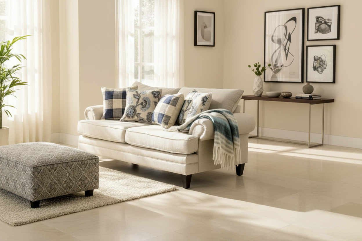 ✔ Bright, Airy Spaces – Ivory upholstery enhances natural light and creates an open feel