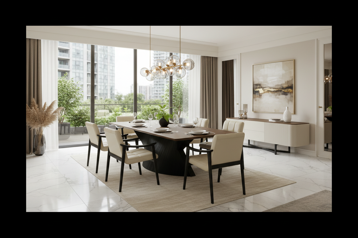 Designed for today’s stylish interiors, the Noir Table comfortably seats 6 to 8 guests, making it perfect for everything from intimate dinners to upscale gatherings. Its minimalist silhouette and luxurious materials make it a versatile centerpiece in modern dining rooms, open-concept layouts, or designer spaces.