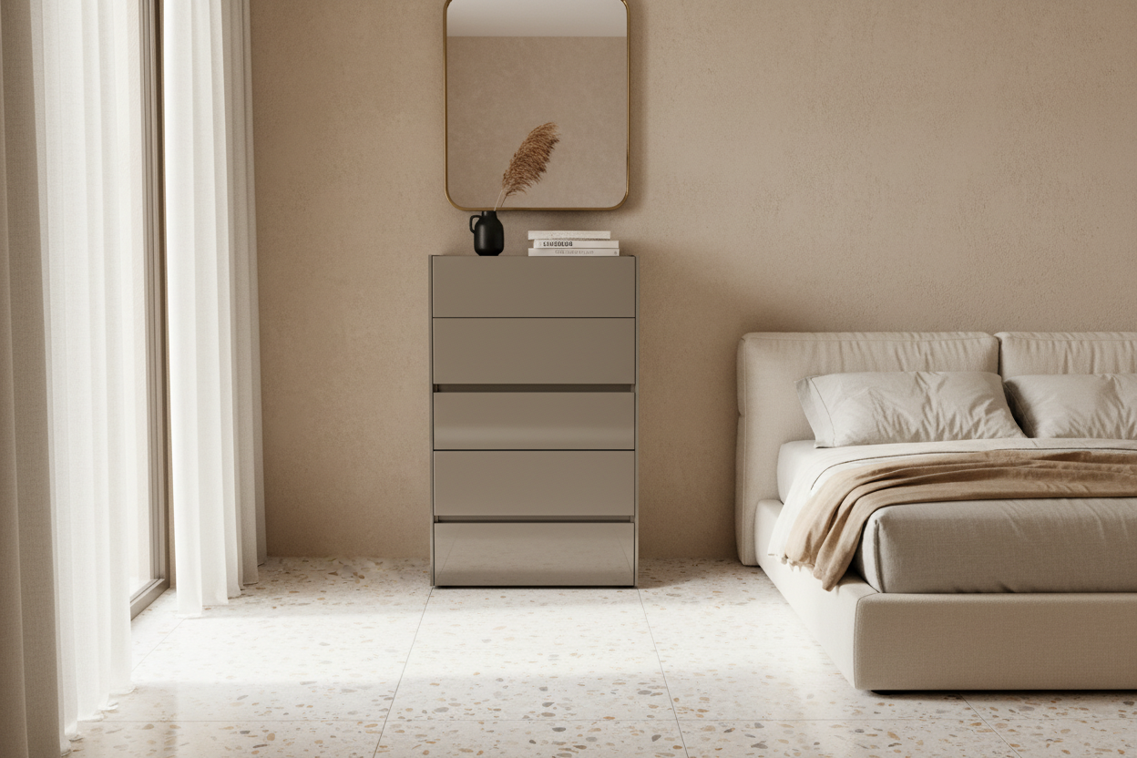 The clean lines and sophisticated finish make this chest incredibly versatile, complementing a wide range of interior styles from Italian minimalism to modern luxury, Scandinavian simplicity to contemporary elegance. Whether placed in a master bedroom, guest room, hallway, or dressing area, this piece serves as both a functional storage solution and a striking design statement.
