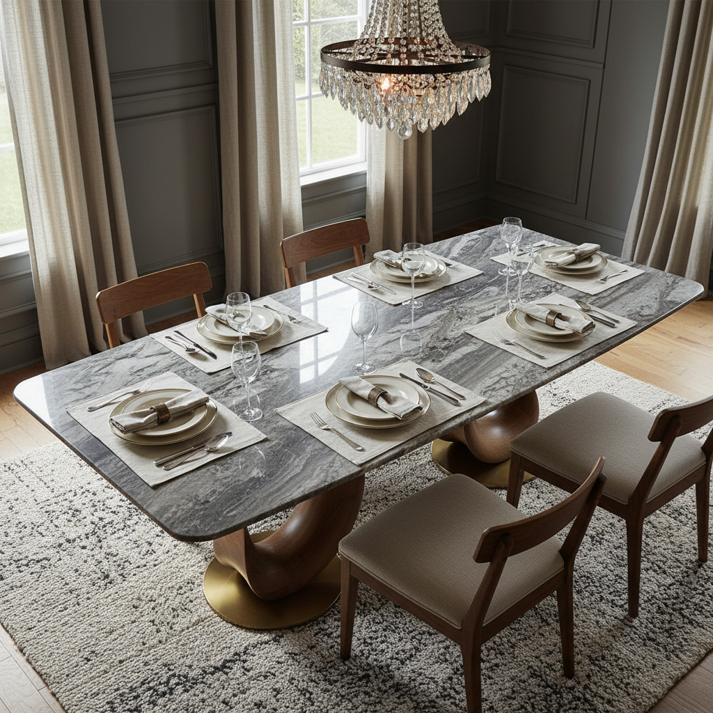 Hand-selected natural marble tabletop with individual veining