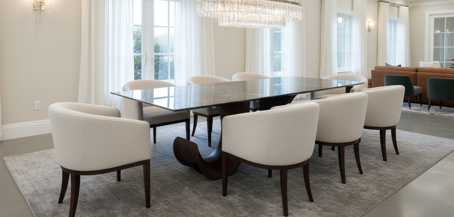 Perfect for designer interiors, upscale residences, and curated hospitality spaces, the Oakland Dining Table comfortably seats 6 to 8 guests and serves as the artistic centerpiece in any setting.