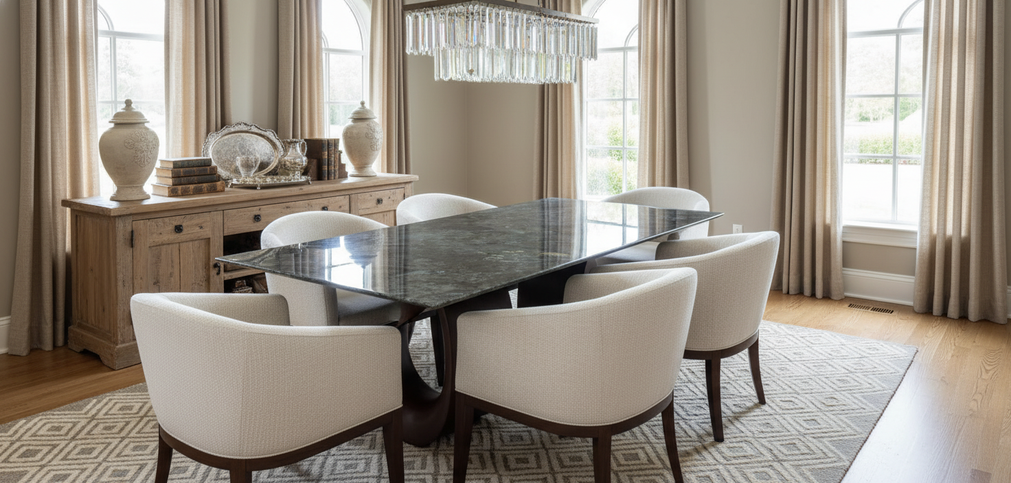 Seats 6–8 comfortably for gatherings and celebrations