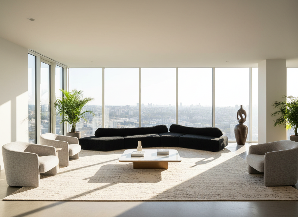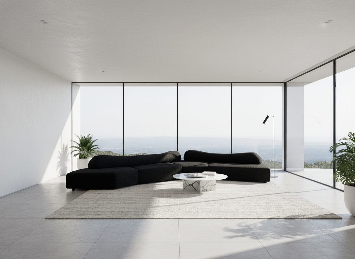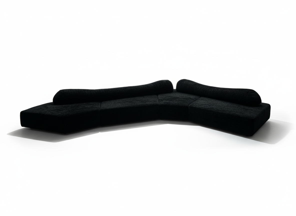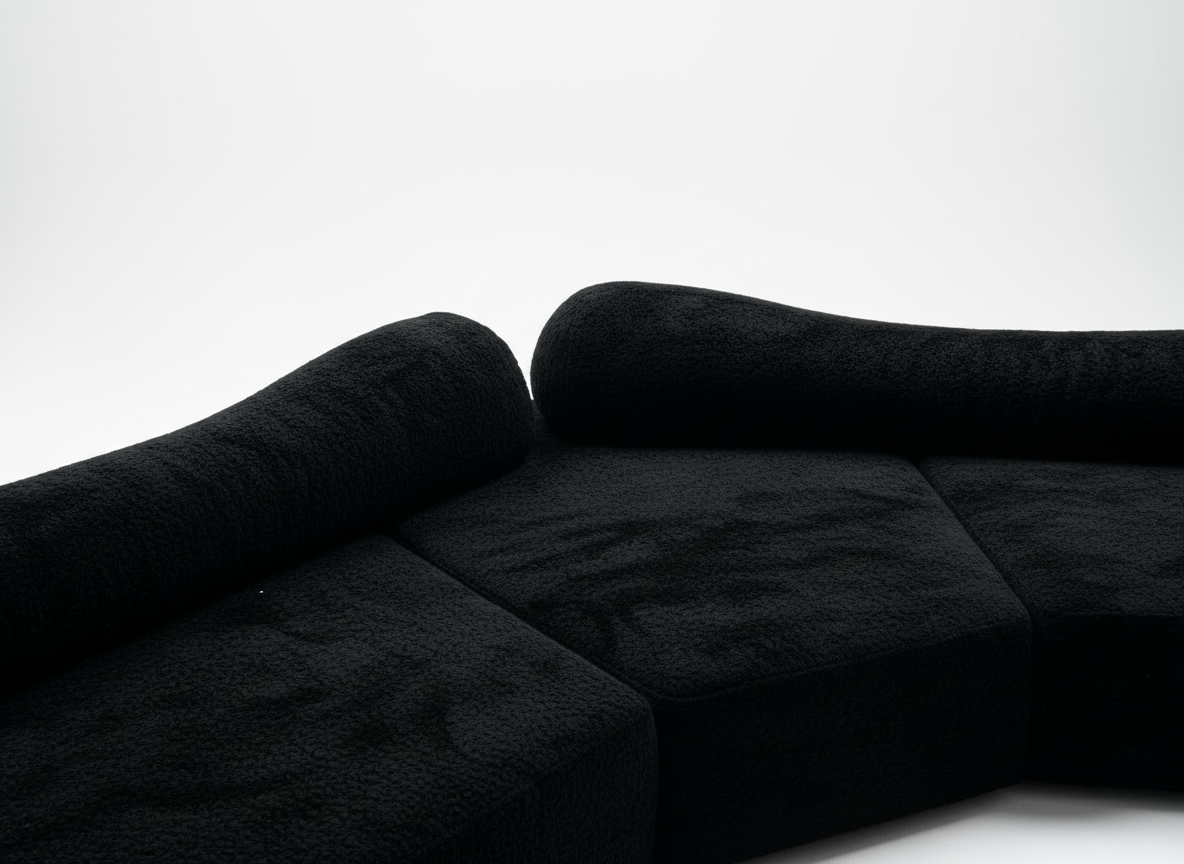 Unleash modern sophistication with the Obsidian Rock Sofa, a striking fusion of architectural form and plush comfort. Inspired by the raw beauty of volcanic rock formations, this modular black sofa features an angular, sculptural silhouette that makes a powerful statement in any contemporary living space.