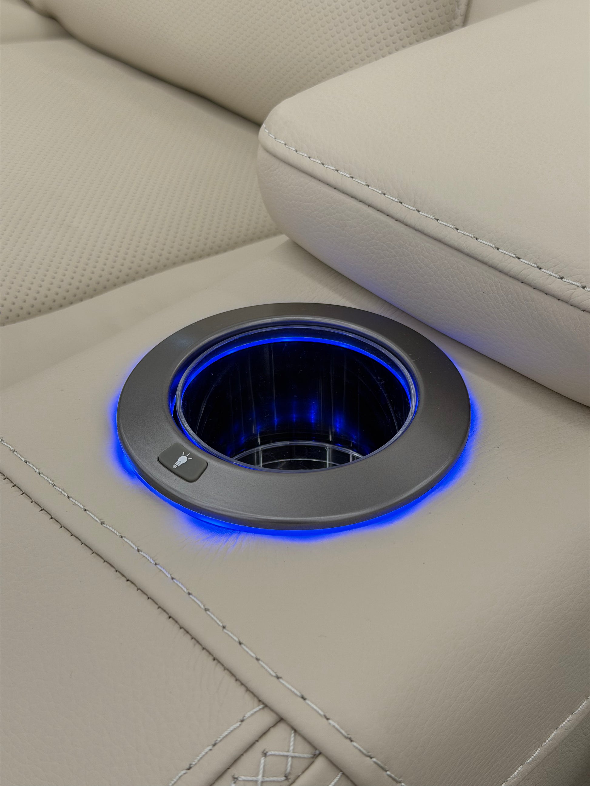 Engineered for comfort and convenience, the Olympic features three powered recliners with zero-gravity positioning, providing the perfect ergonomic balance to reduce pressure and enhance full-body comfort.