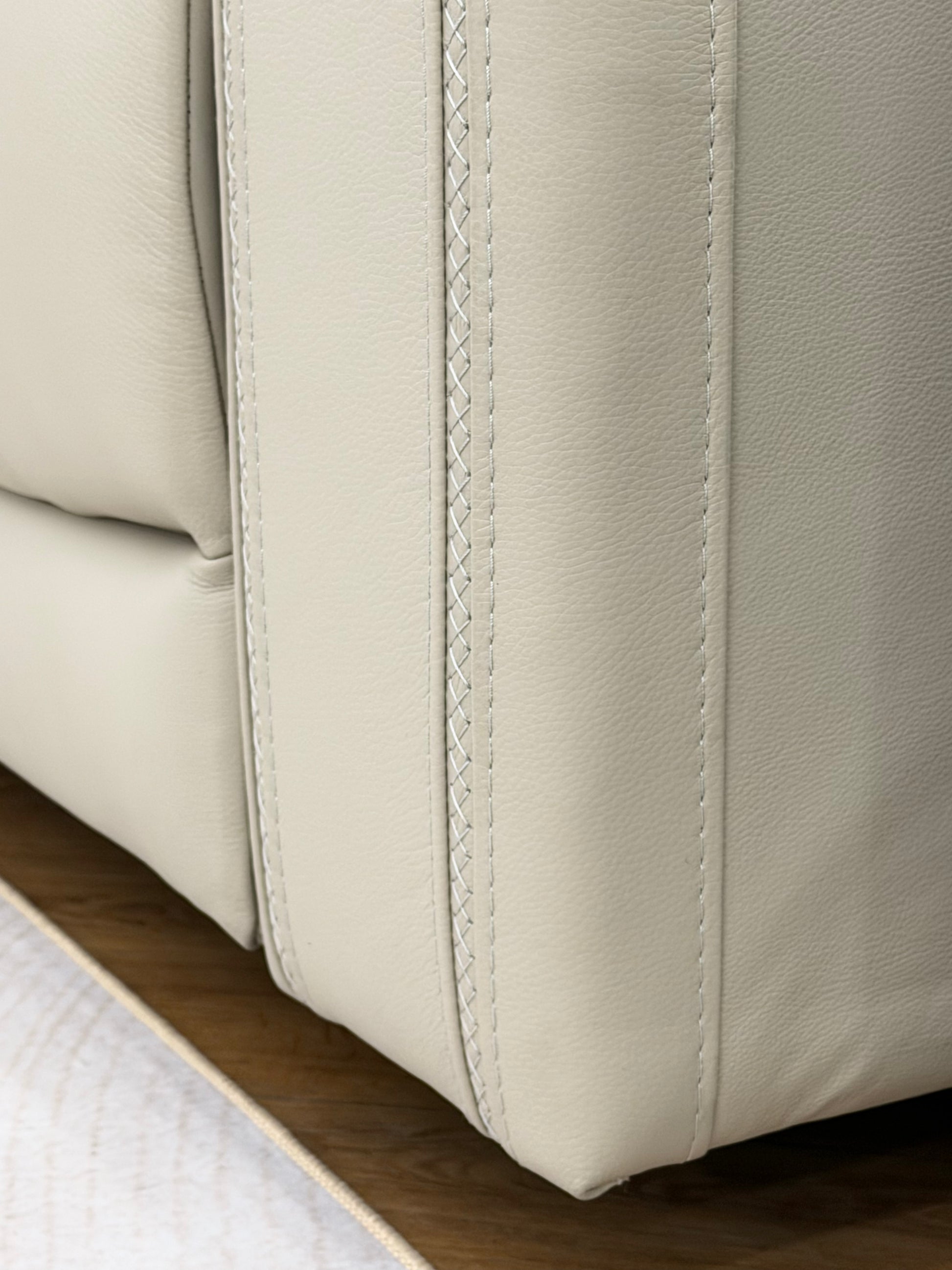 Every detail — from the curved channel stitching to the soft-touch armrests and refined contrast piping — is crafted for both comfort and visual harmony, making this piece a centerpiece of contemporary living.
