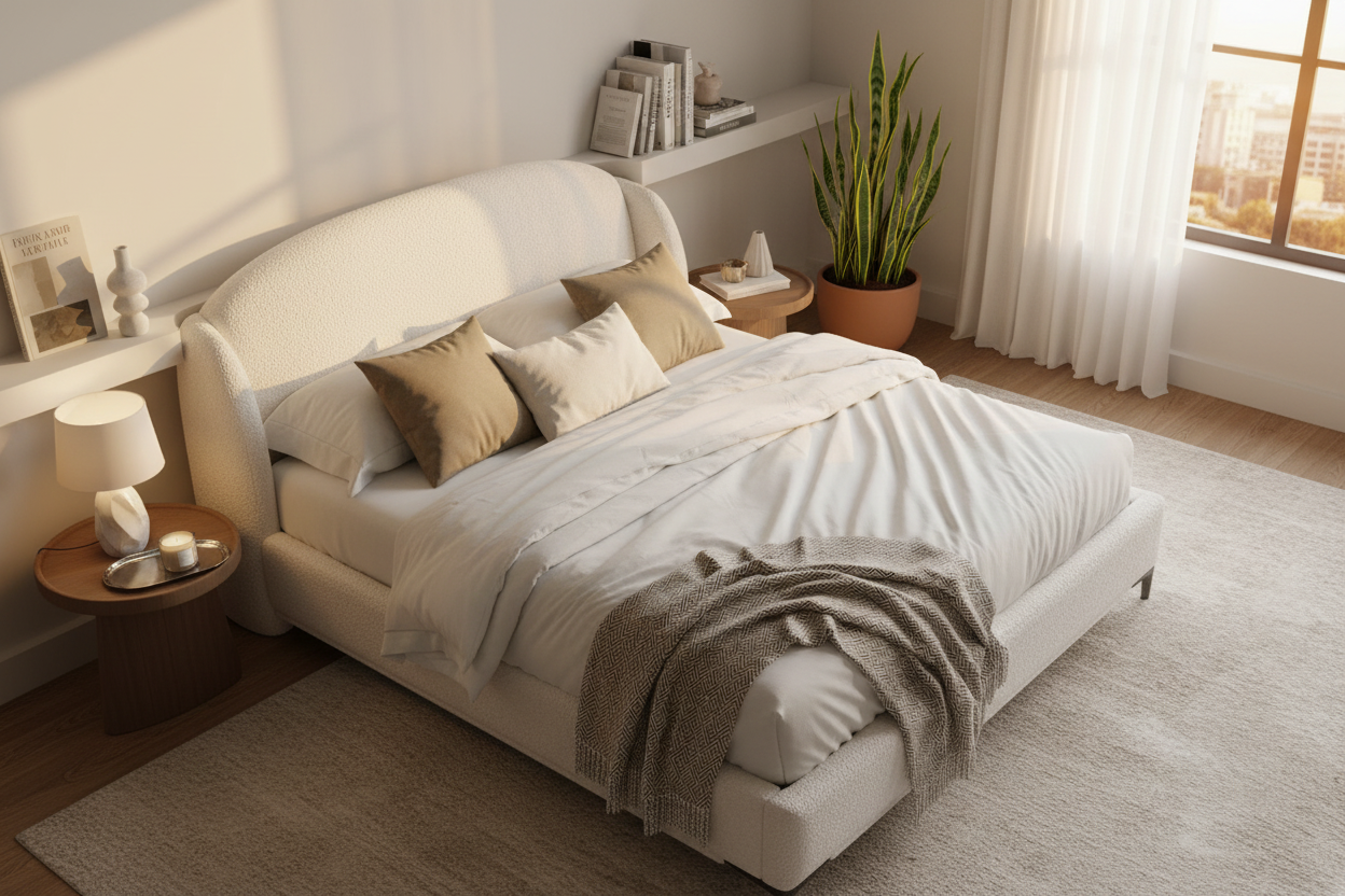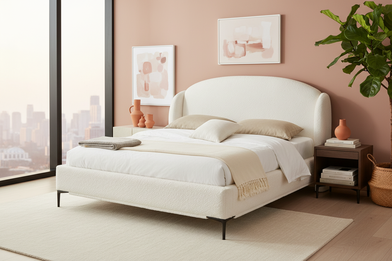 - Elegant Curved Headboard: The smooth, rounded headboard silhouette offers a soft and inviting aesthetic.