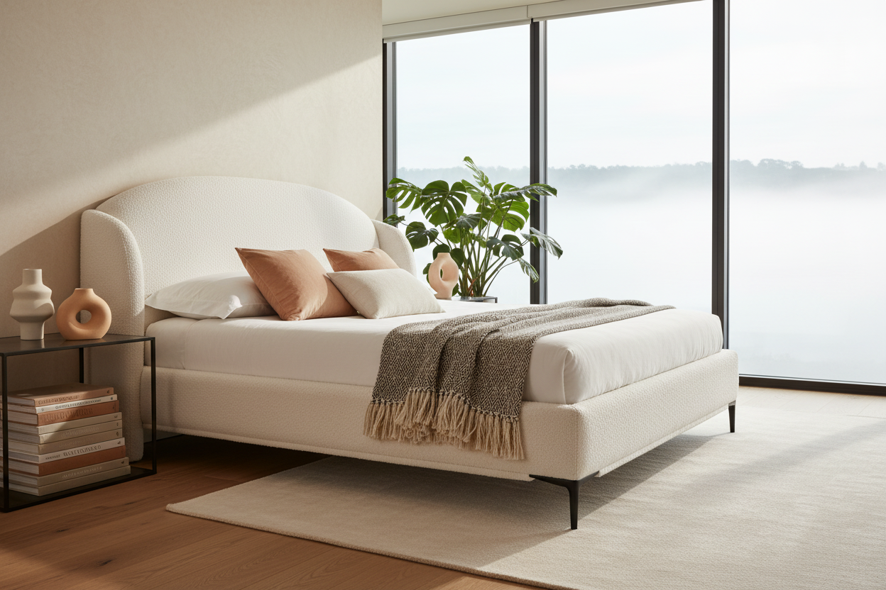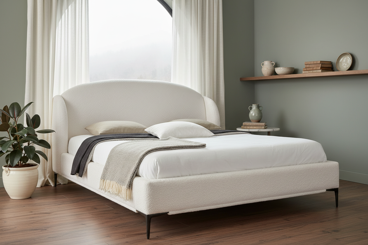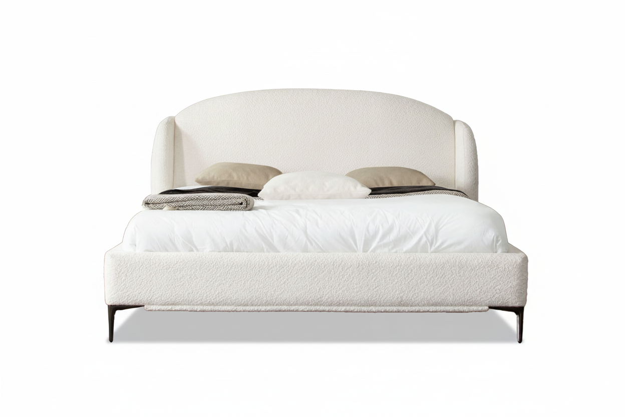 Introduce modern luxury and soft curves into your bedroom with the Pathway Curved Bouclé Platform Bed. This statement piece combines contemporary design with plush textures, creating a serene and stylish sanctuary.