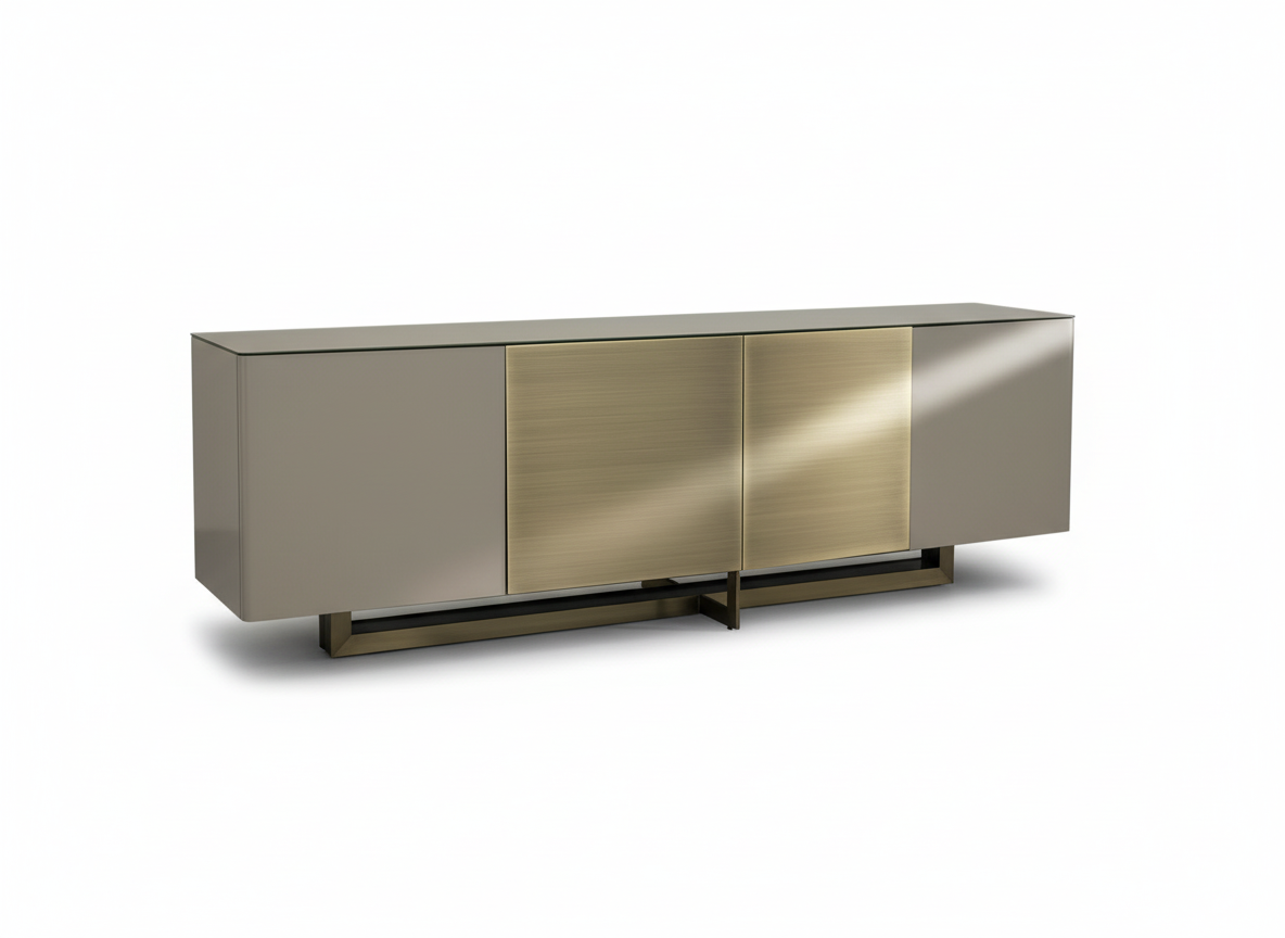 The Pistol Buffet is a sleek and sophisticated storage solution, designed to enhance contemporary interiors with its elegant finishes and bold contrasts. Featuring a brushed gold accent and a smooth lacquered frame, this buffet seamlessly combines luxury and functionality.