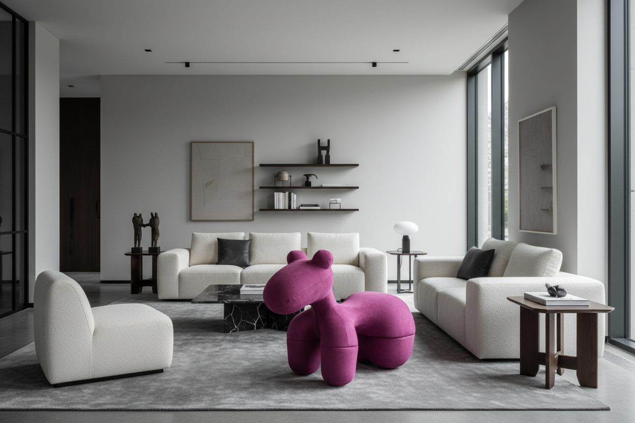 The Pony Chair brings a playful yet sophisticated charm to your living space with its premium hardwood frame construction. This uniquely shaped chair is designed with high-resilience foam, offering superior comfort and durability for daily use. Its whimsical design makes it a fun yet functional addition to any room, be it a modern living space or a children's playroom.