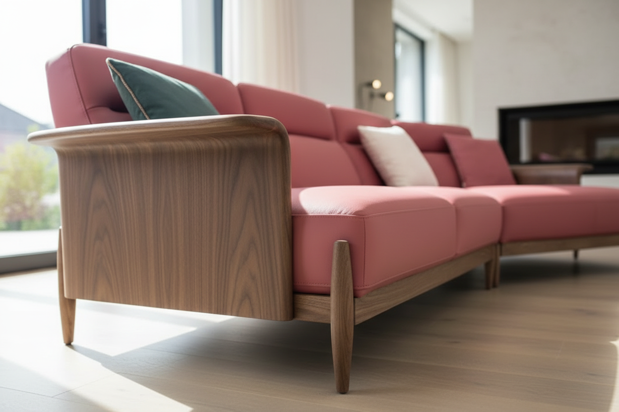- Accentuated with curved walnut wood armrests and legs for a seamless blend of modern and natural aesthetics.