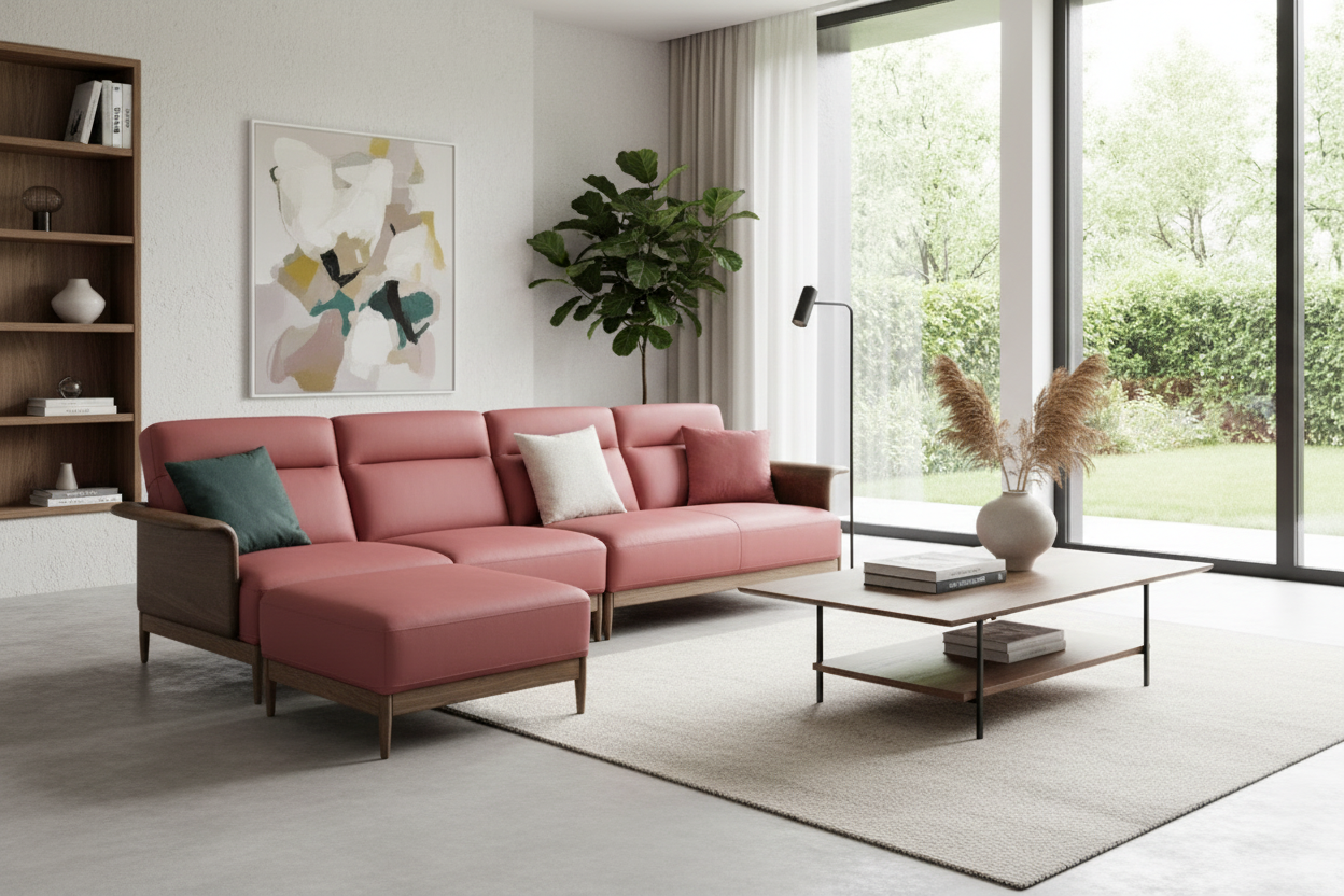 - Features a unique rose-pink upholstery that adds a touch of sophistication to any interior.