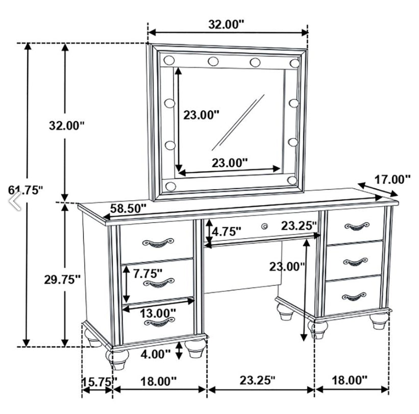 - Ample Storage: Includes seven drawers, including a glitter-accented center drawer, to neatly organize your cosmetics, jewelry, and more.