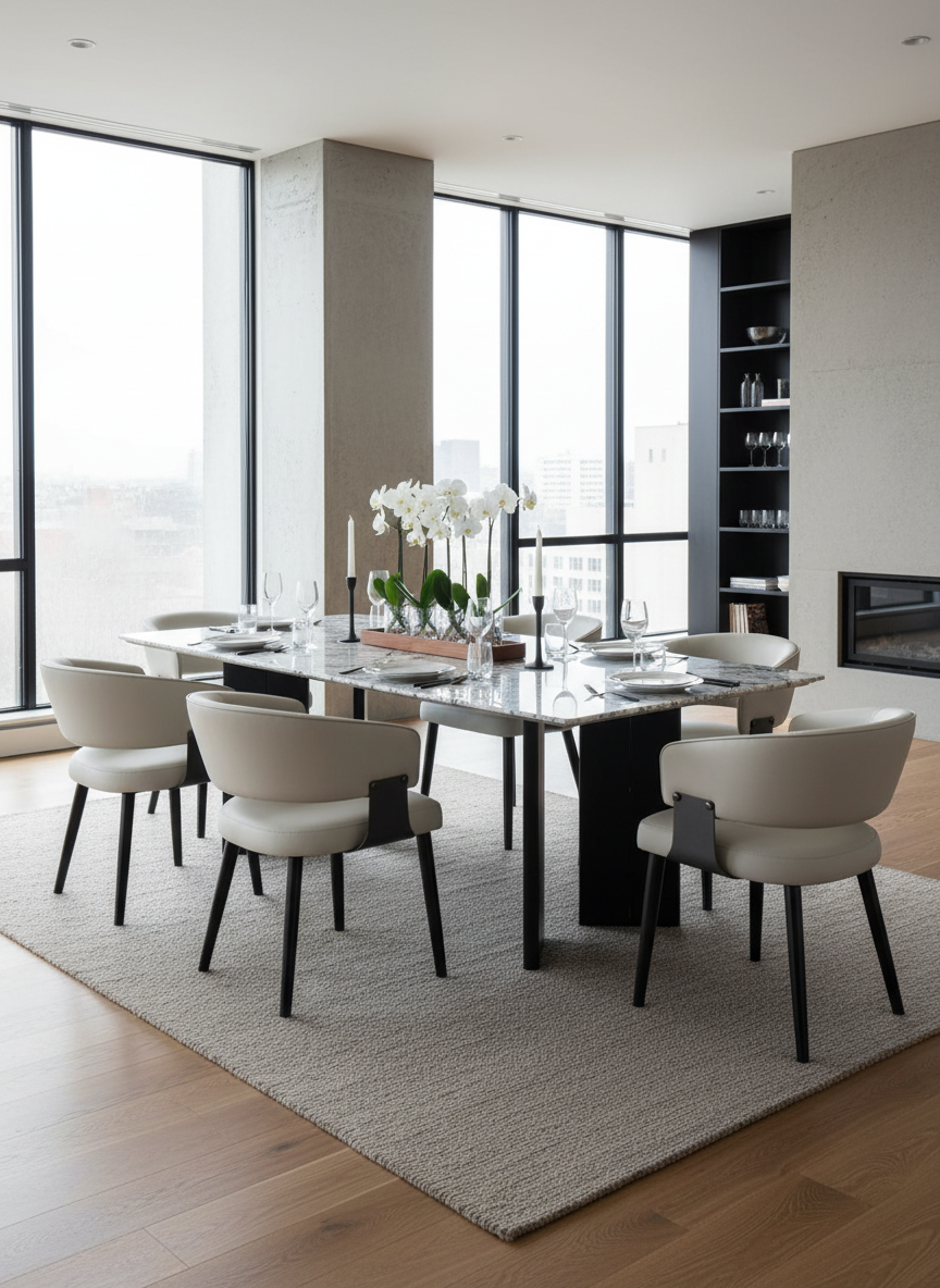 Inspired by nature’s raw grace, the Snowpeak Marble Dining Table invites quiet luxury into everyday life. Whether placed in a sunlit apartment or a high-rise penthouse, it becomes more than just a table — it’s a place where stories, laughter, and memories are shared.