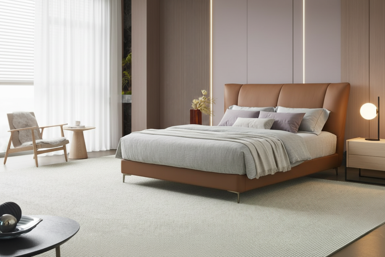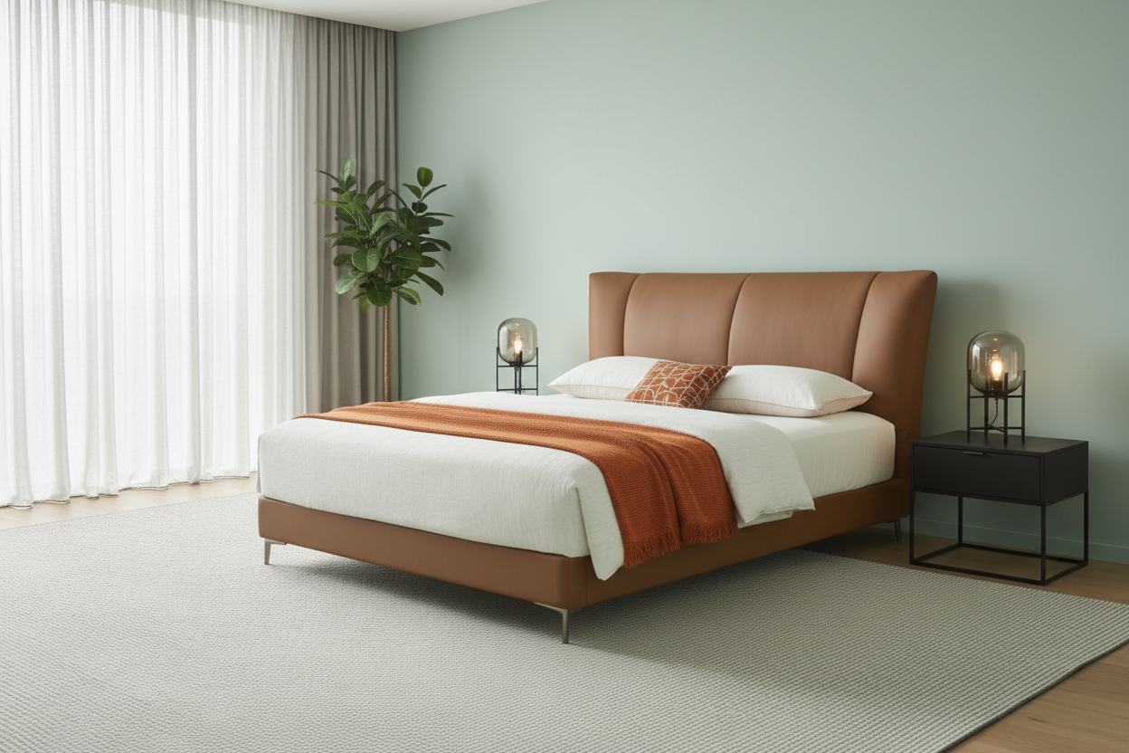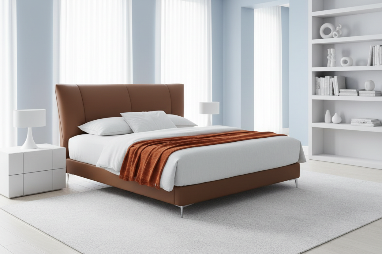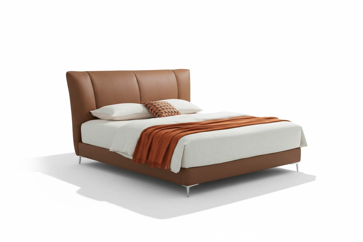 Solvan Leather Crown Bed – Regal Comfort with Contemporary Flair