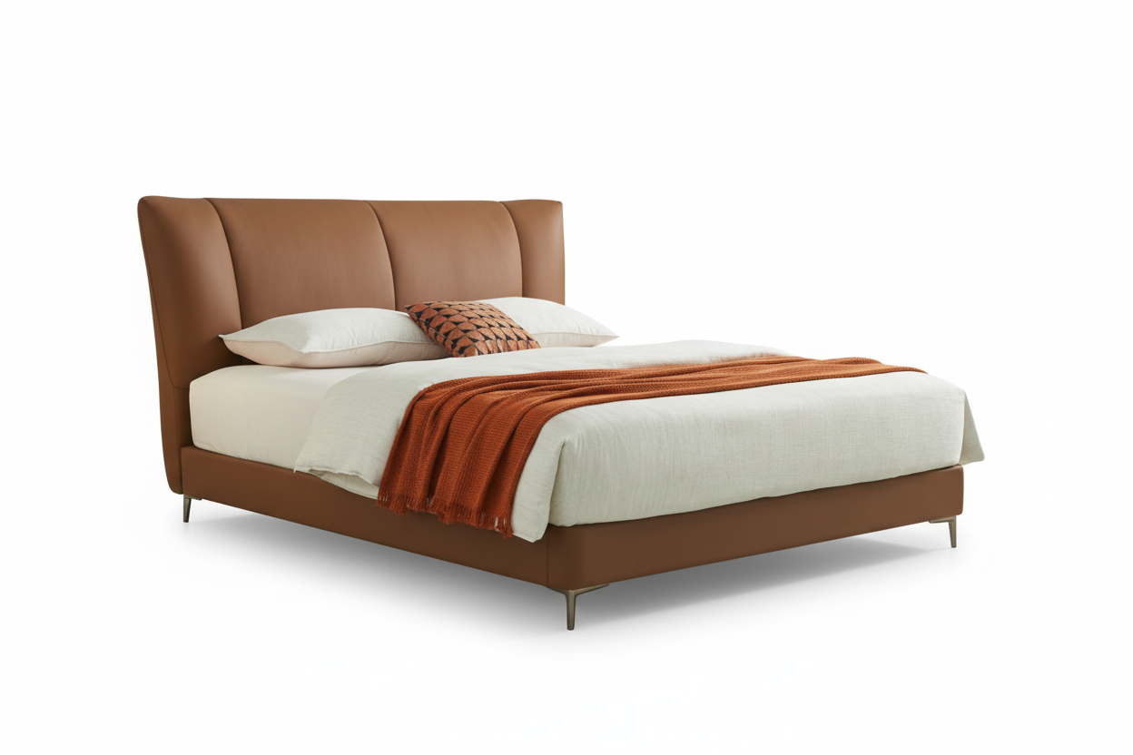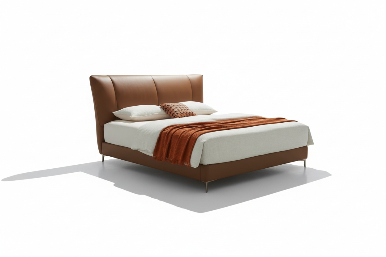 Redefine your sleep space with the Solvan Leather Crown Bed—where bold design meets timeless sophistication.