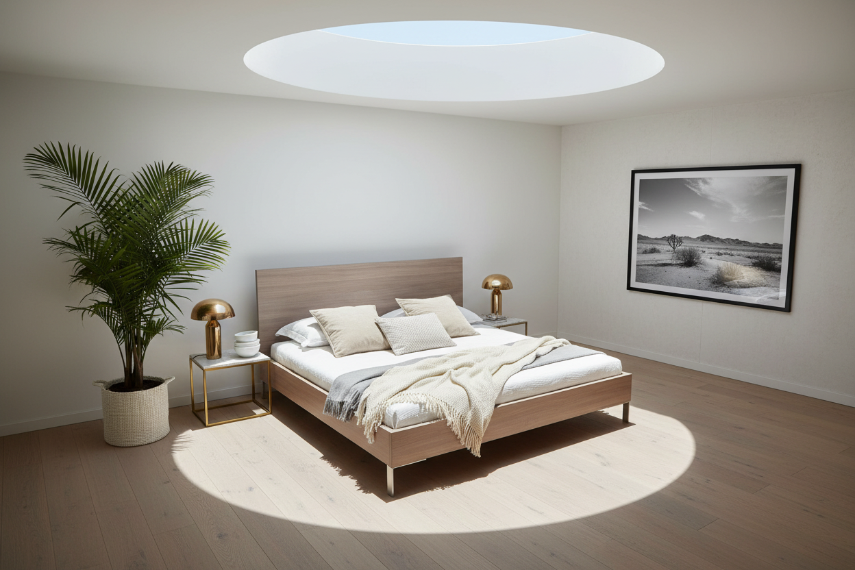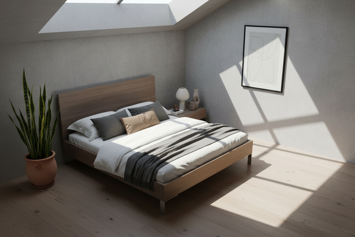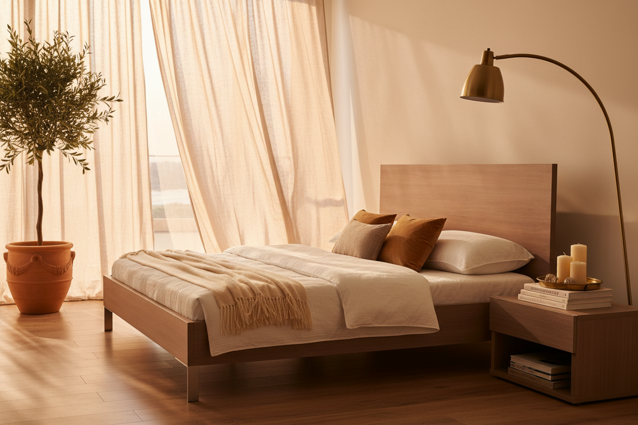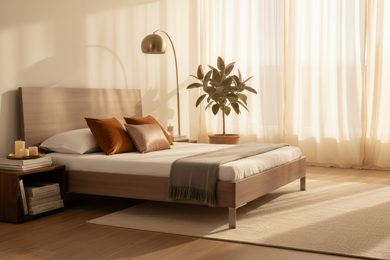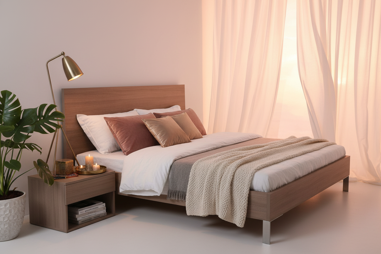 Minimalist Headboard: The simple headboard design adds a modern touch while maintaining a minimalist aesthetic.