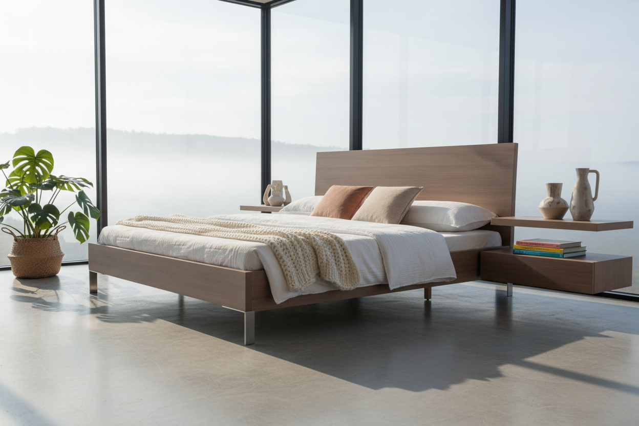 The Timberline Modern Bed adds a serene and refined touch to any bedroom with its natural materials and clean design. It offers both comfort and elegance, making it a perfect choice for modern living.