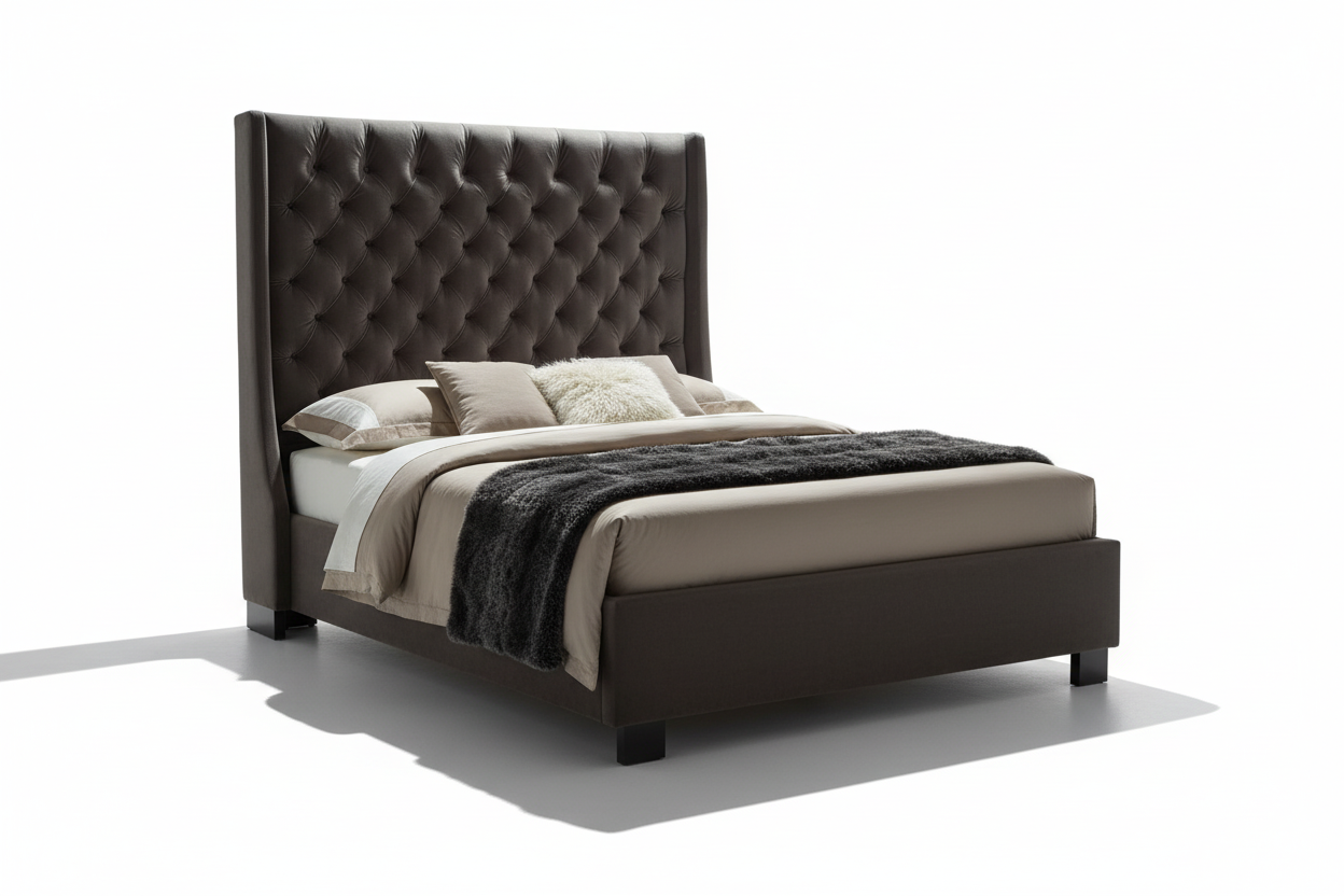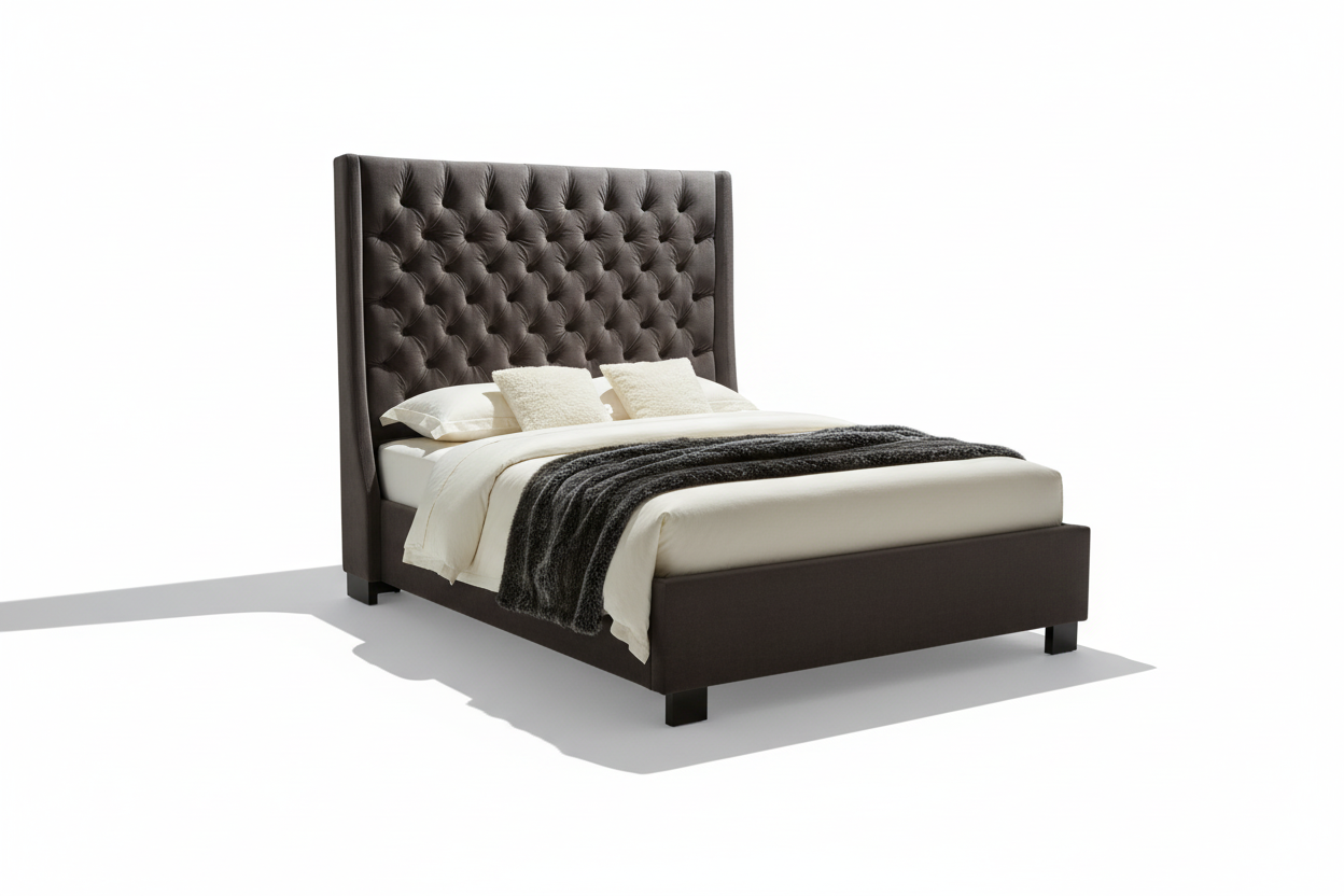 - Grand Wingback Headboard: Features a tall, wingback silhouette with deep diamond tufting for a classic and luxurious appearance.