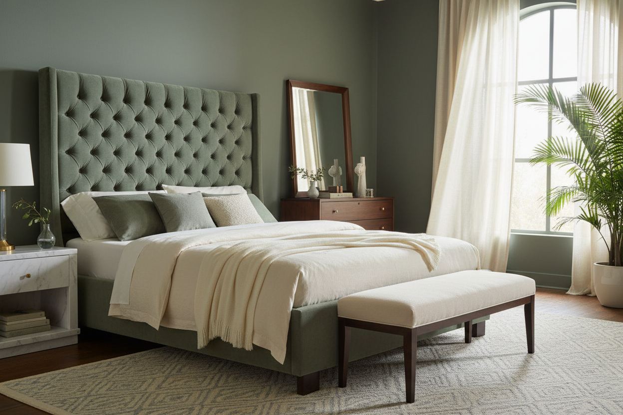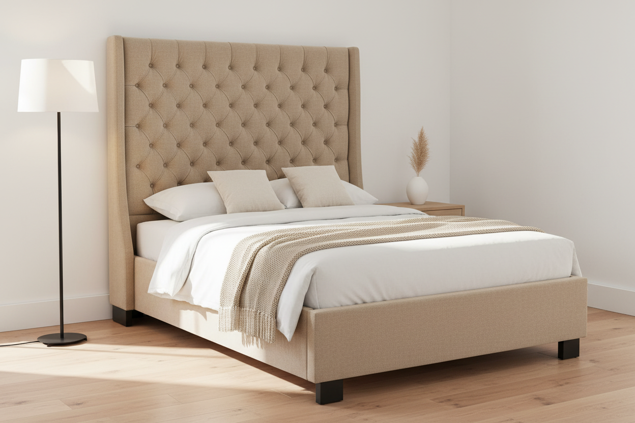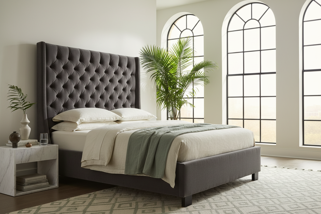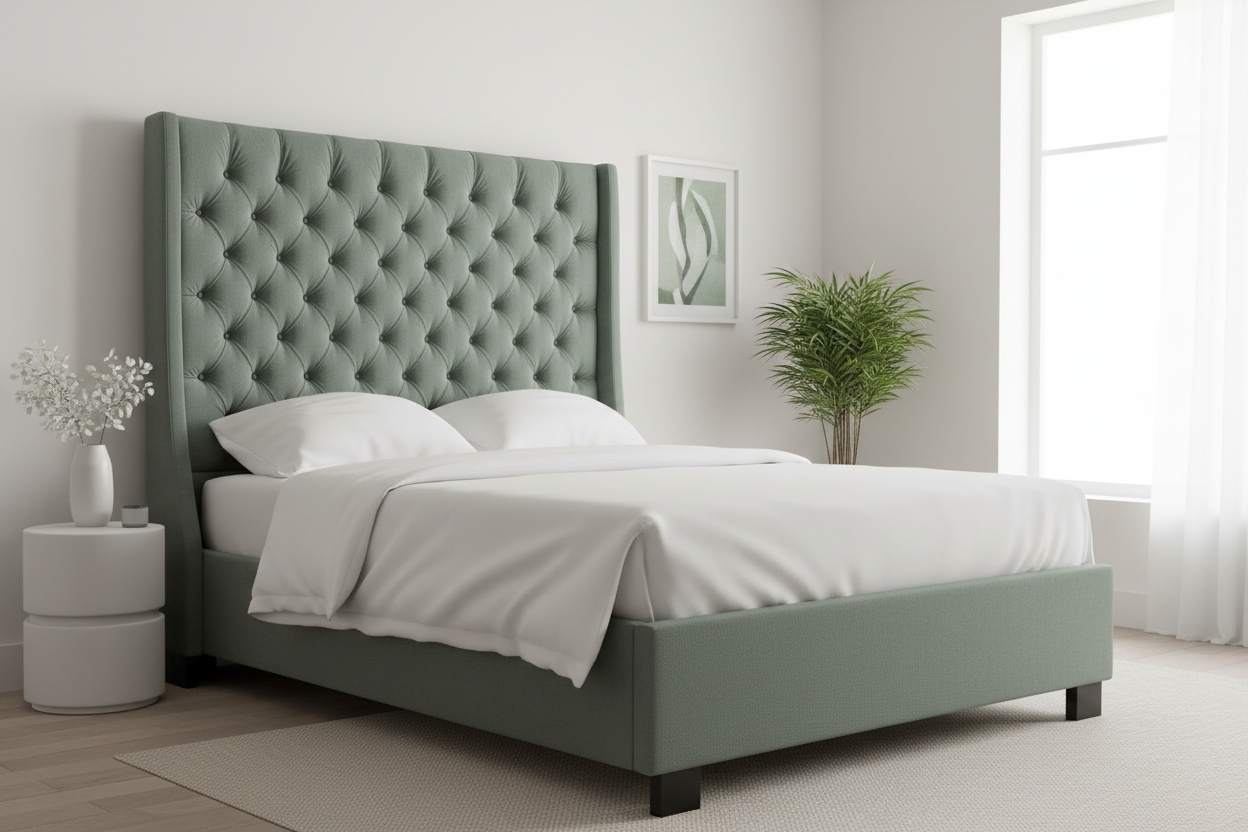 Tufted Wingback Platform Bed