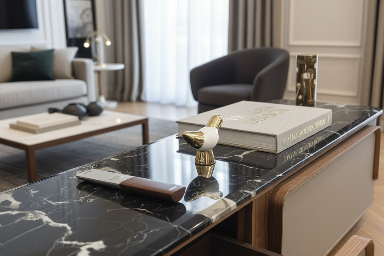 - Stable Platform: The robust marble top provides a secure, level surface for televisions of various sizes