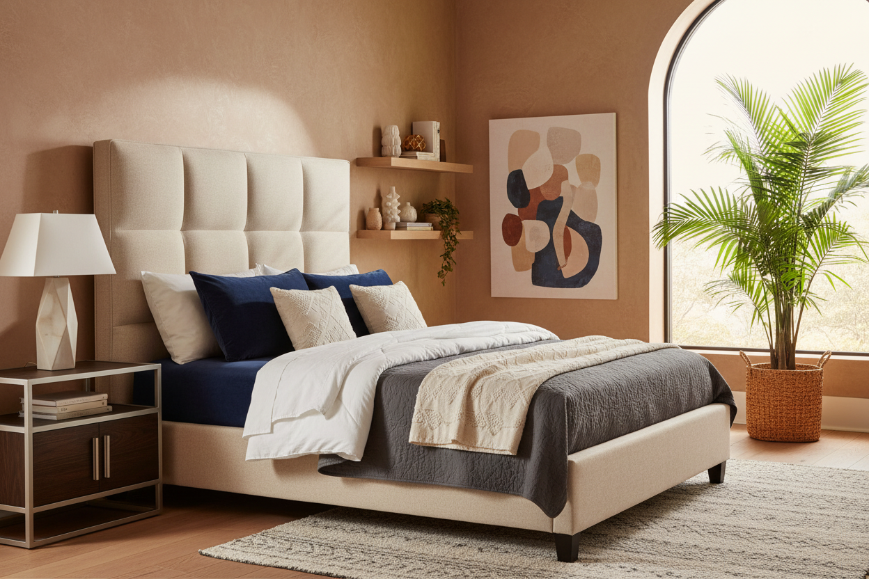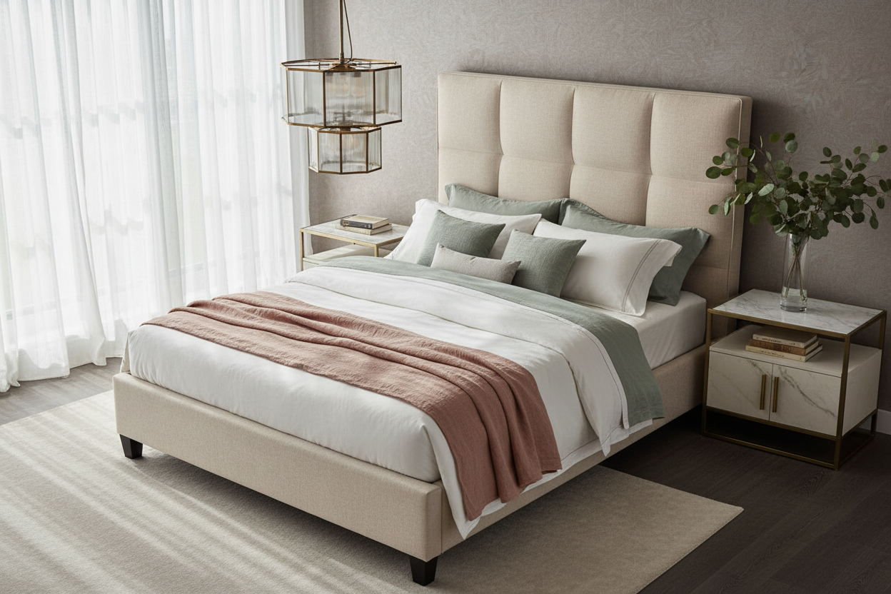 - Neutral Tones: The light beige upholstery complements bold and soft color palettes alike.