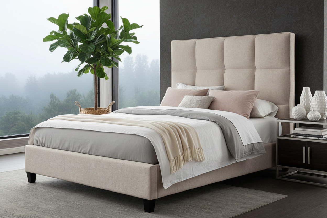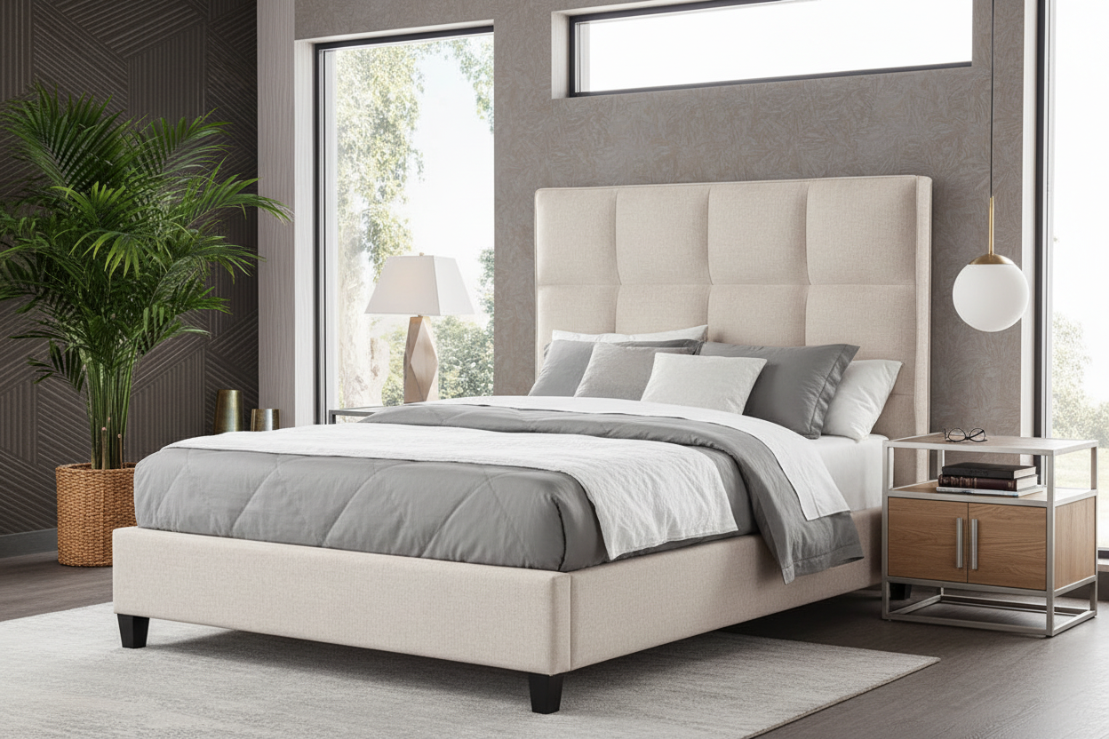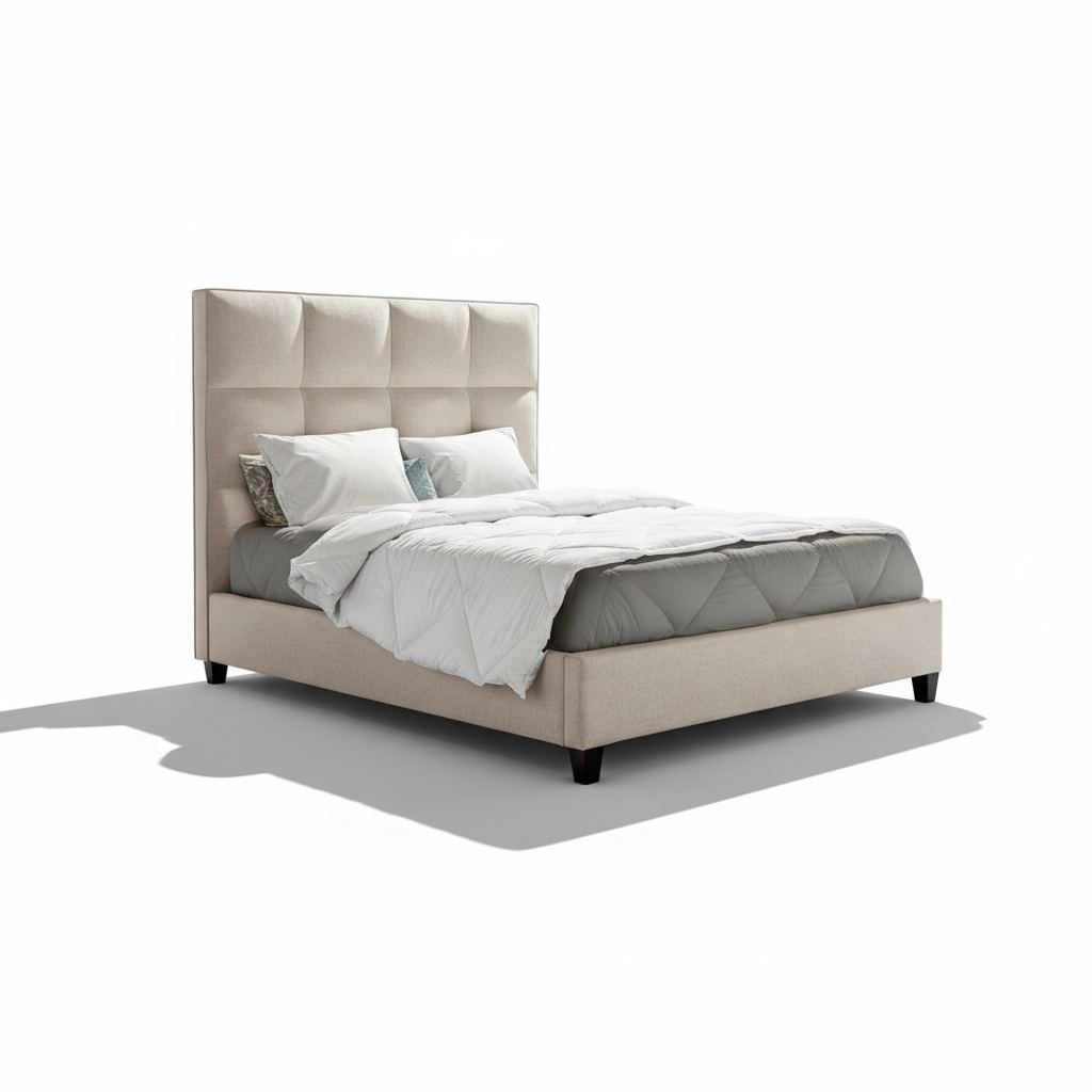 - Elegant Panel Headboard: Features a tall, tufted panel design with clean, square lines for a modern and sophisticated look.