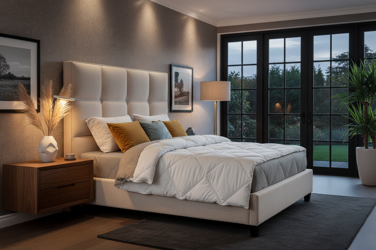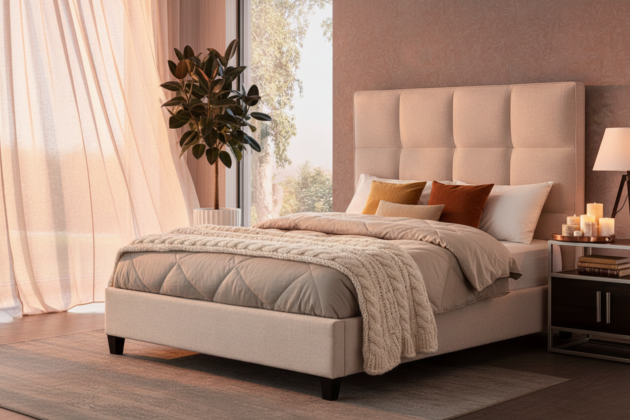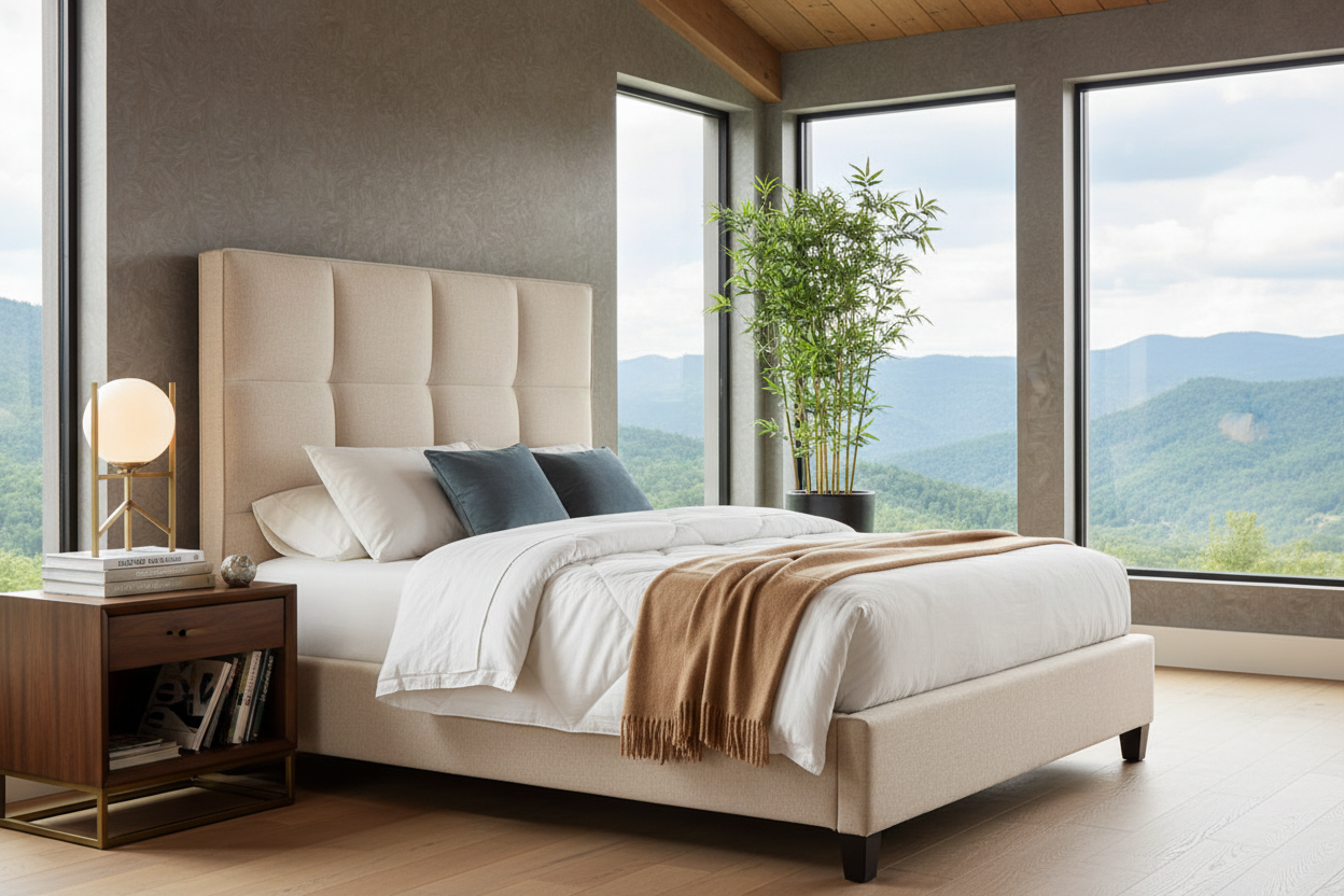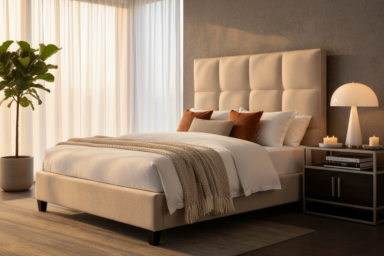 - Elegant Panel Headboard: Features a tall, tufted panel design with clean, square lines for a modern and sophisticated look.