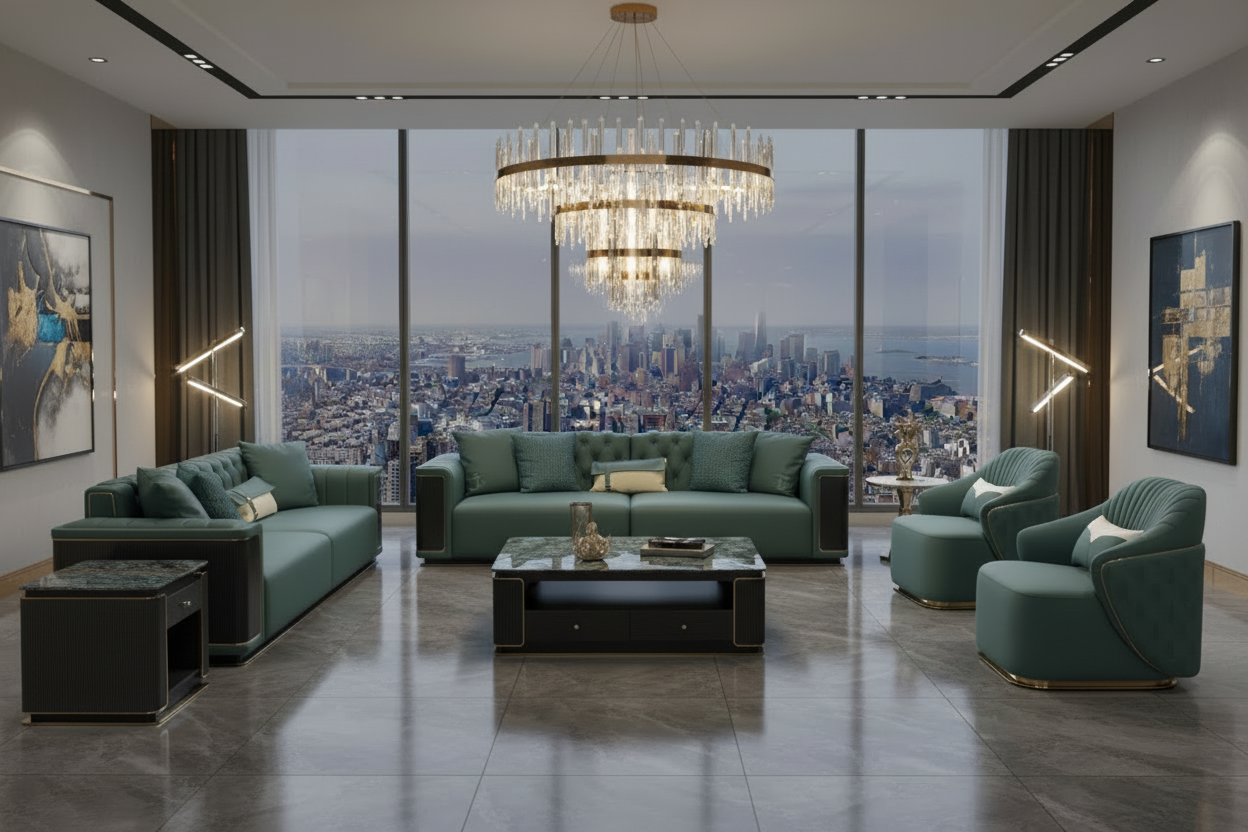 Elevate your living space with the Verde Majestic Collection, a masterfully curated ensemble of contemporary luxury furniture. This comprehensive set combines sophisticated design with exceptional craftsmanship, featuring premium materials and refined details that define modern elegance.