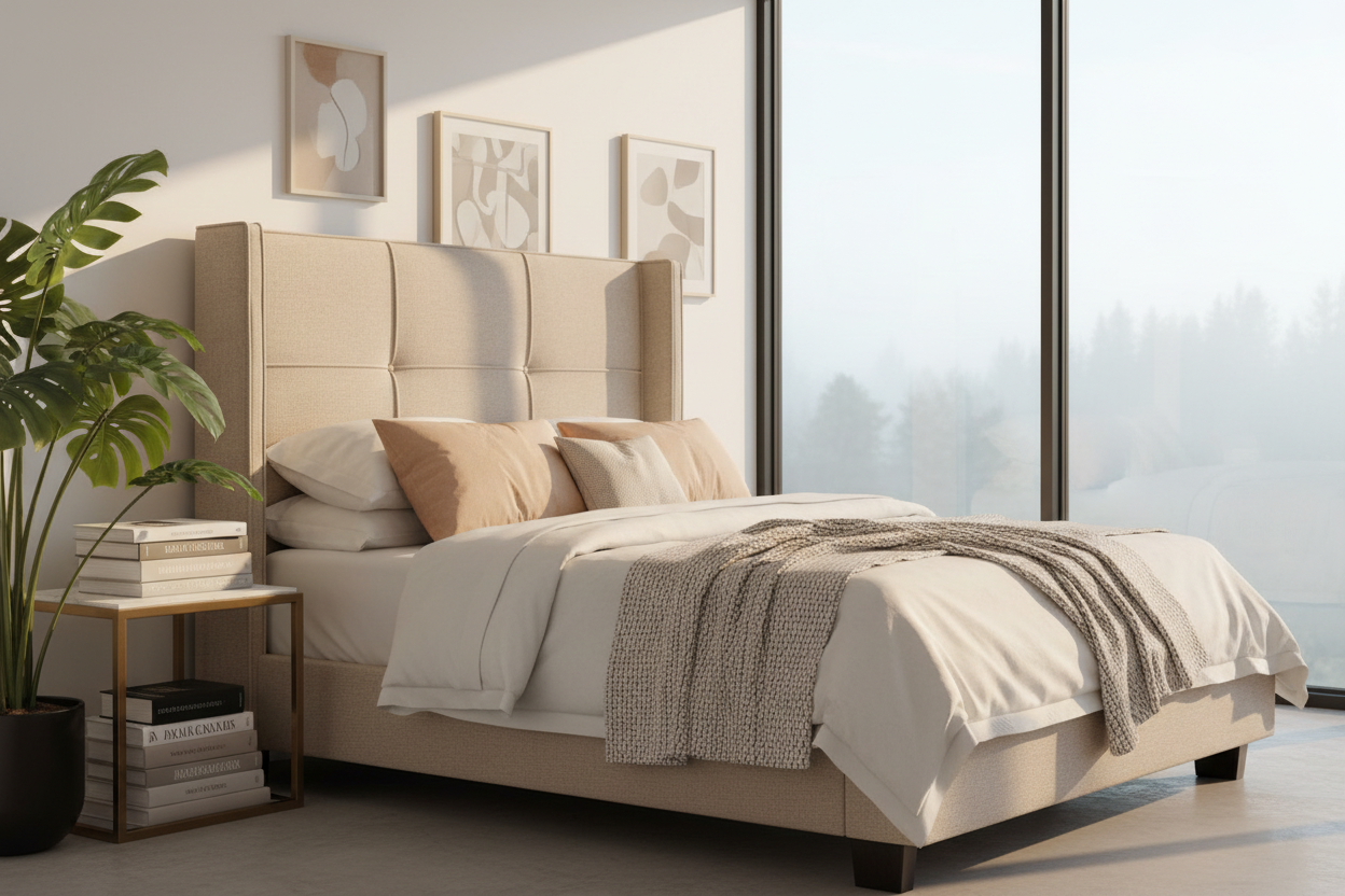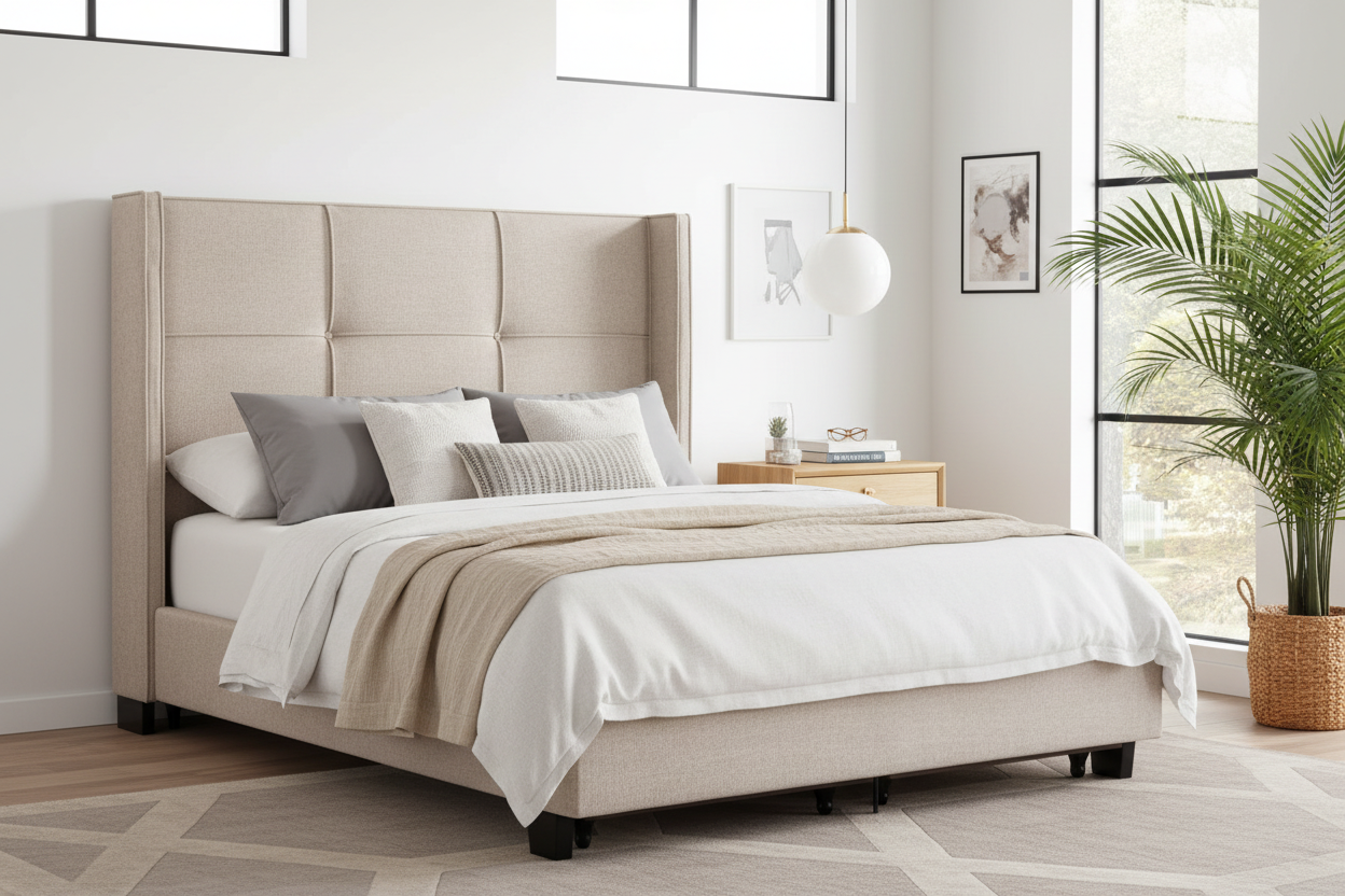 - Elegant Wingback Headboard: The tall headboard with winged sides adds sophistication and provides a cozy, enveloped feel.